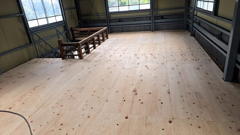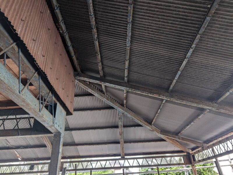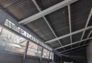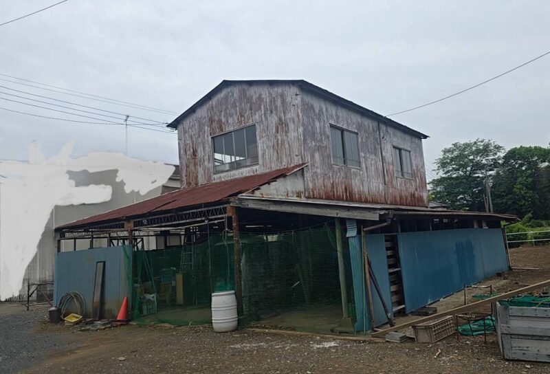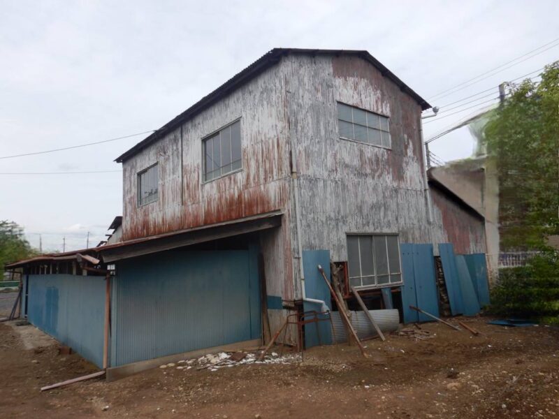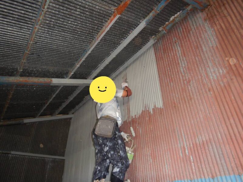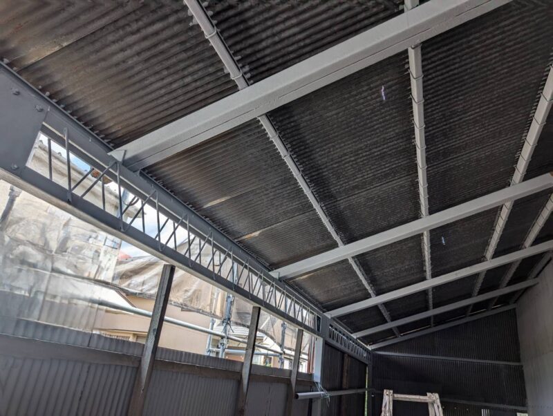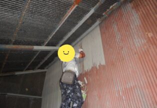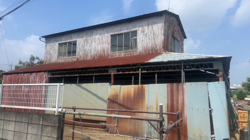 屋根・外壁のガルバ波板張り替えと鉄骨の塗装(シリコン仕上)床補強にコンパネを上張り工事を施工。