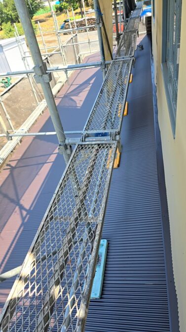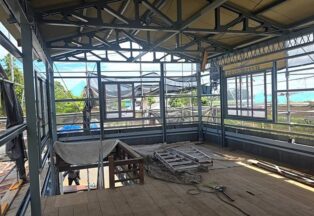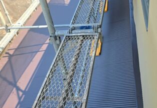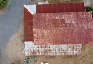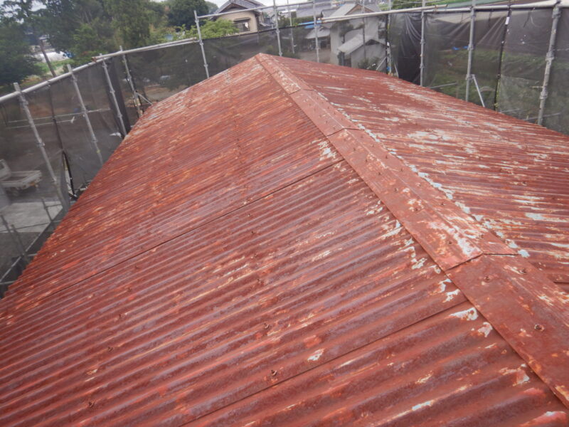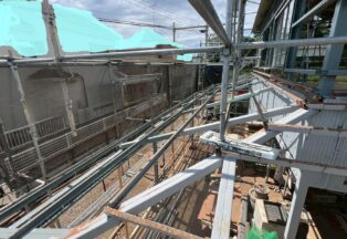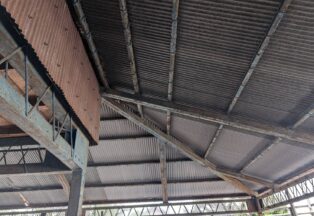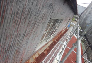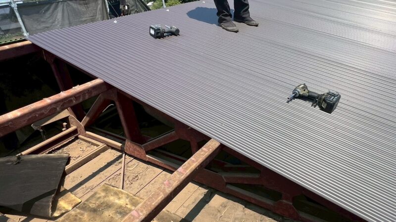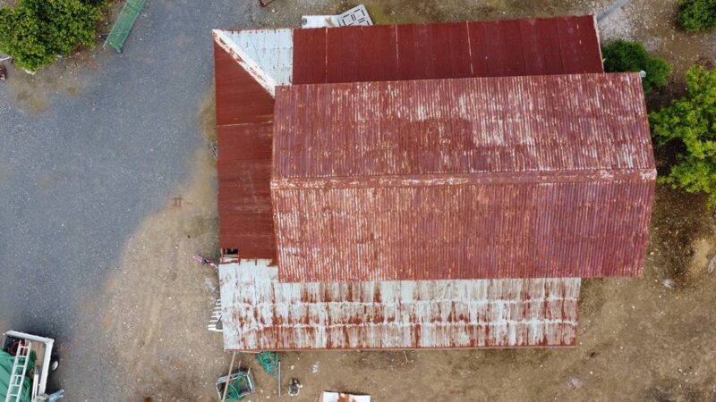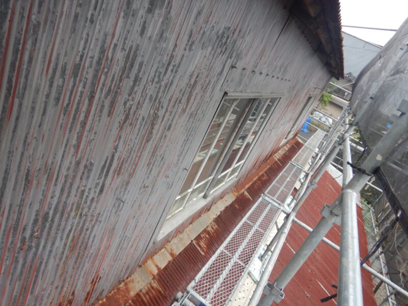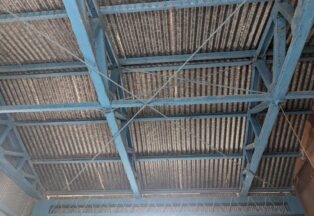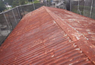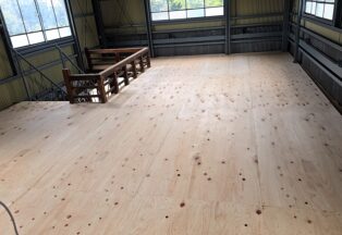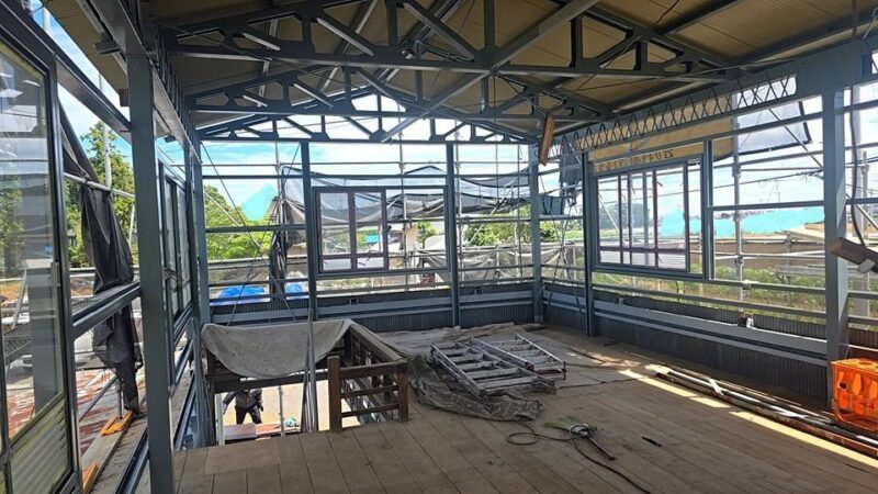 屋根・外壁のガルバ波板張り替えと鉄骨の塗装(シリコン仕上)床補強にコンパネを上張り工事を施工。